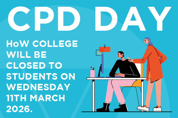HoW College will be closed to students on Wednesday 11th March 2026 due to a whole college CPD day.