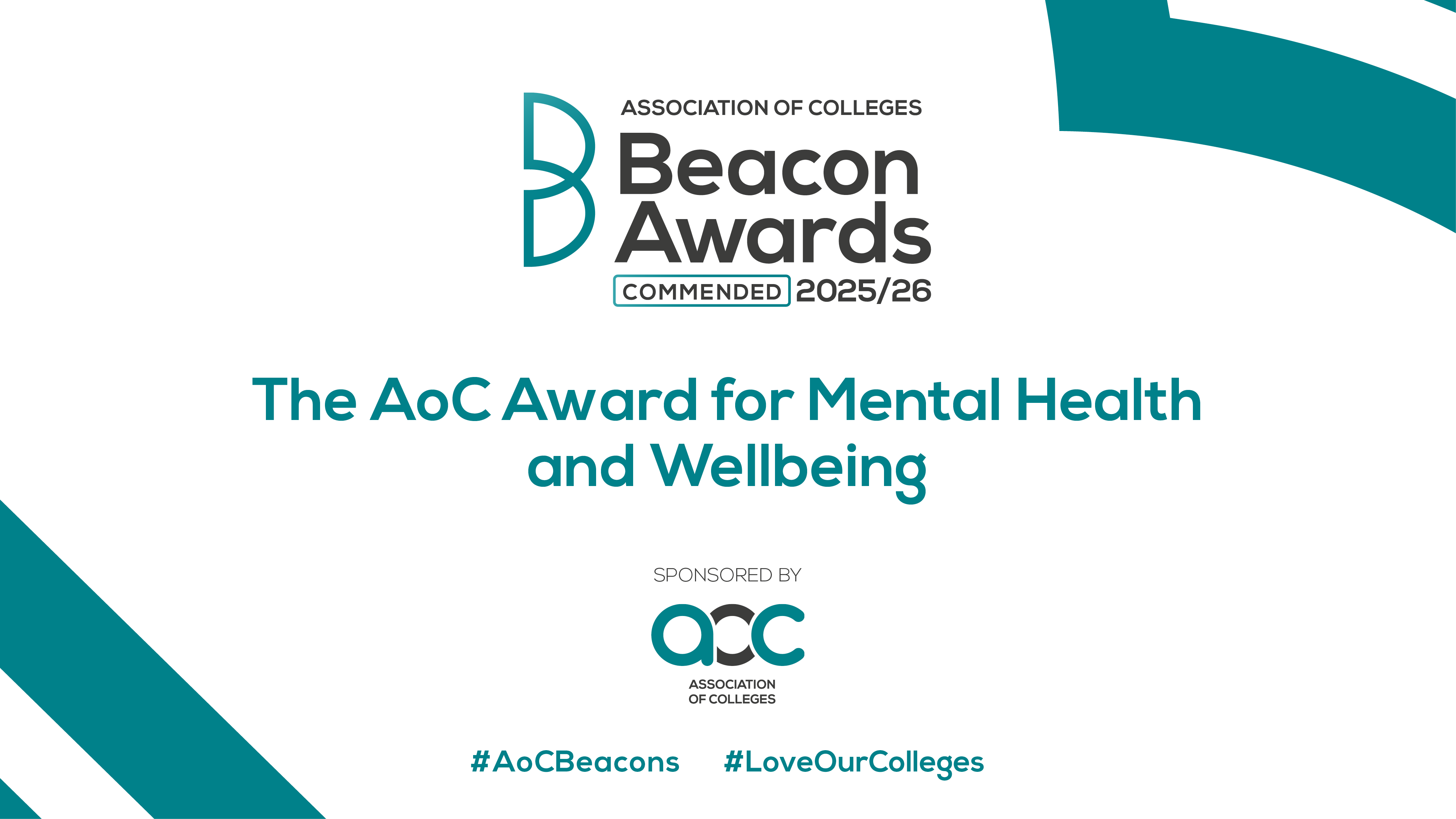 To be commended for The AoC Award for Mental Health and Wellbeing highlights the strives the college has made to be one of the leading colleges in supporting its students and staff mental health and wellbeing.