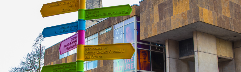 Worcester Business Improvement District (Worcester BID) launched a project to redesign some of the fingerposts that are placed around Worcester city centre. The brief stated that the design needed to reflect the College and its values and could involve students, teachers and parents' associations and could also be run as an educational project.