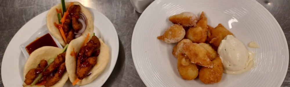 As part of their EPA, they both had to cook two course meals that met set criteria and dietary needs. Eleni cooked chicken bao buns and loukoumades (Cypriot doughnuts) with a thyme ice cream and flavoured syrup. Tommy Cooked buttermilk mushroom goujons with a spicy BBQ sauce followed by tofish and chips with mushy peas and vegan tartare sauce.